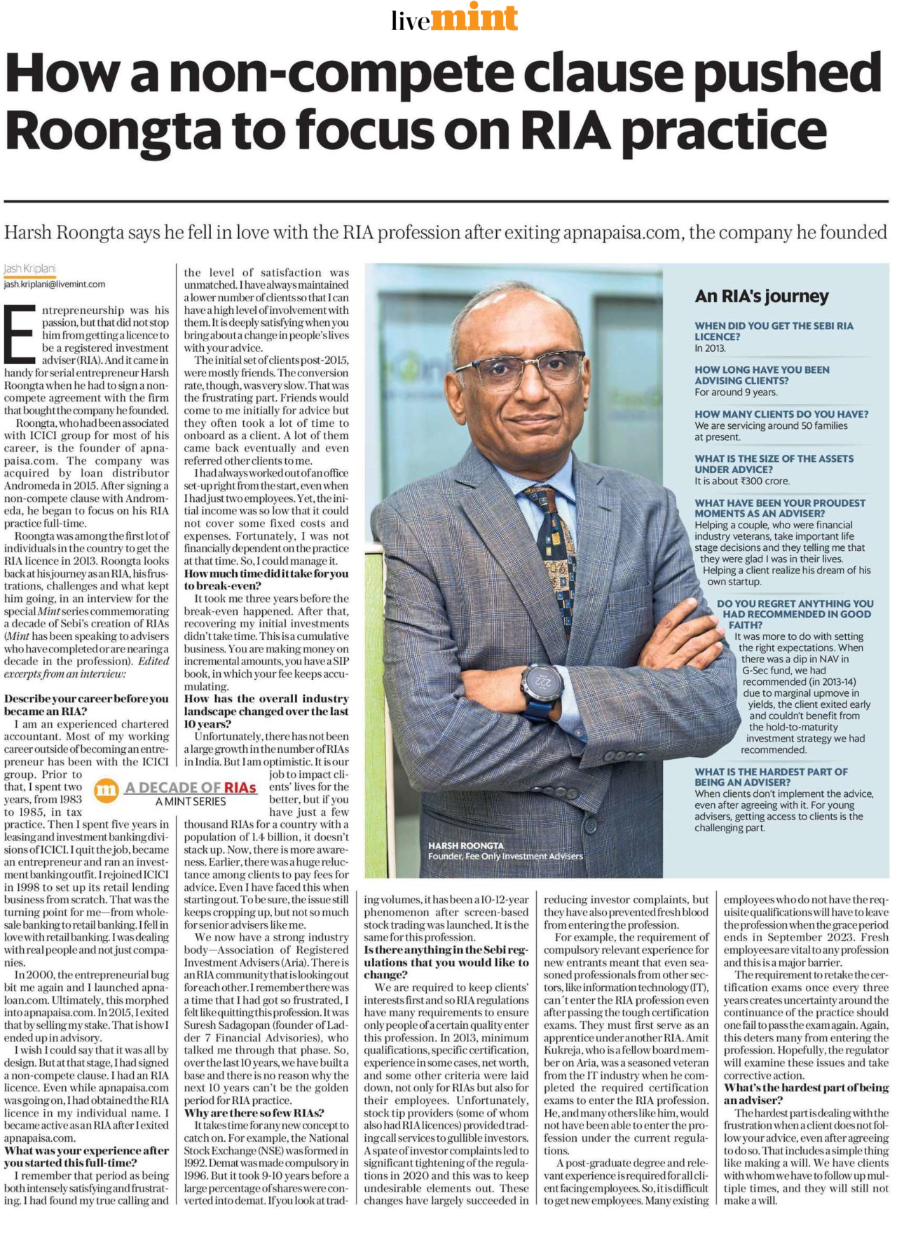 How Harsh’s career transformed in to an RIA Financial, Personal Finance, Press, RIA / By Team FeeOnly / January 23, 2023 How Harsh’s career transformed in to an RIA Read More »